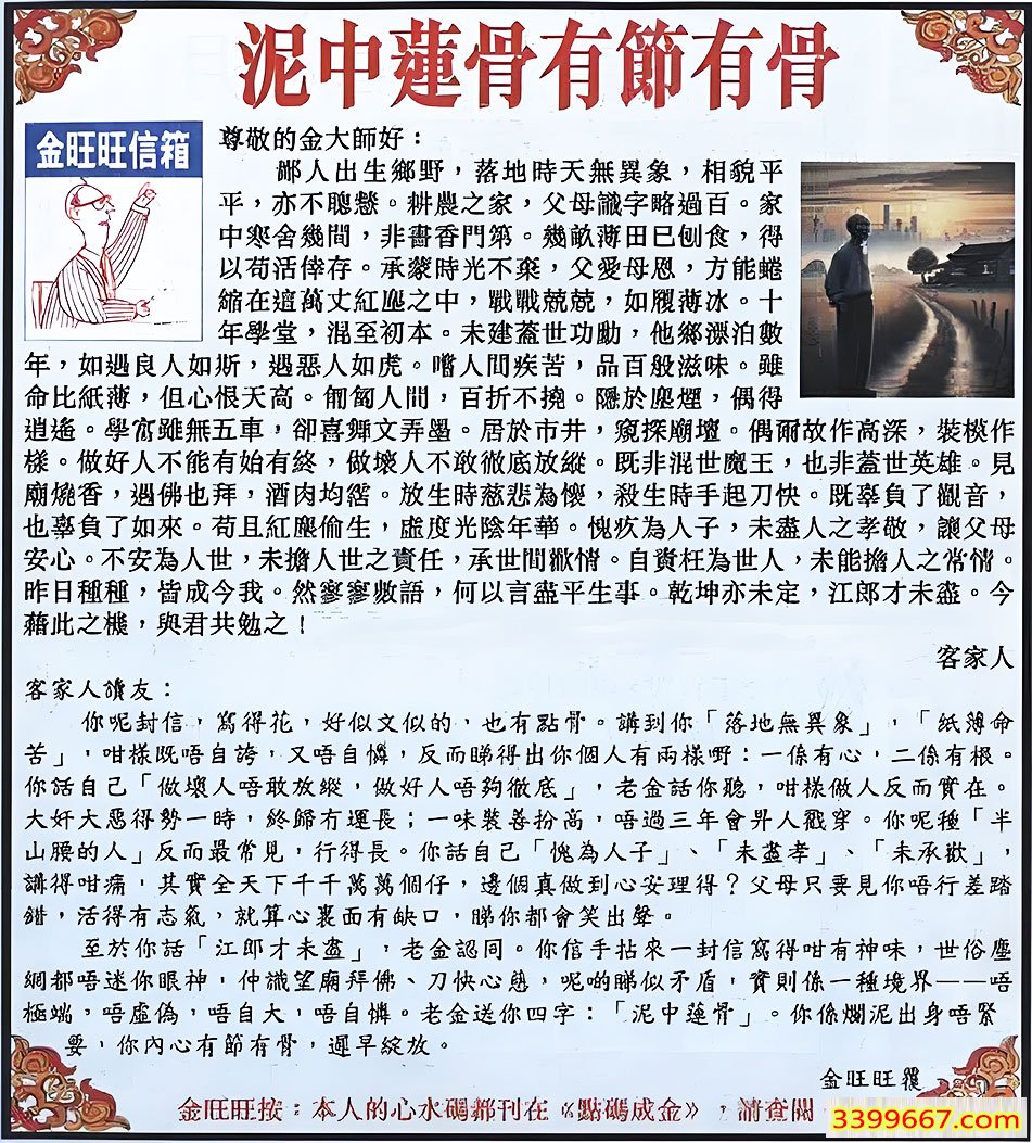 | 主题 :097期:金旺旺信箱彩民推荐→→《泥中蓮骨節有骨》 |