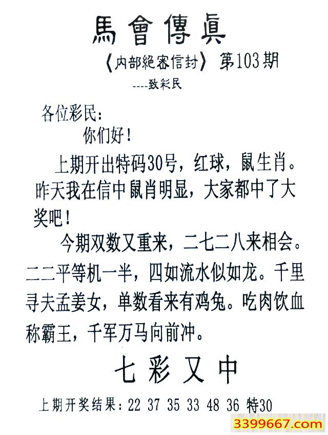 103期:首发推荐:≮馬會傳眞≯→(香港正版)