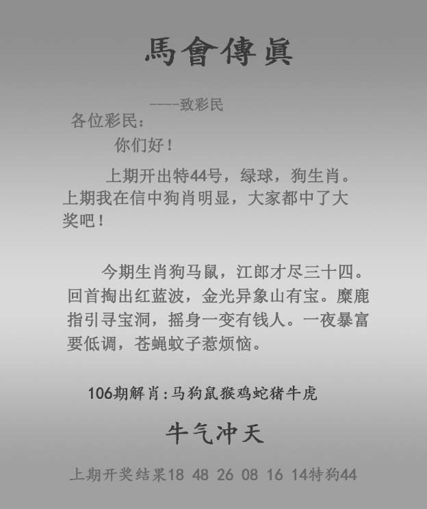 主题 :106期:正马会传真