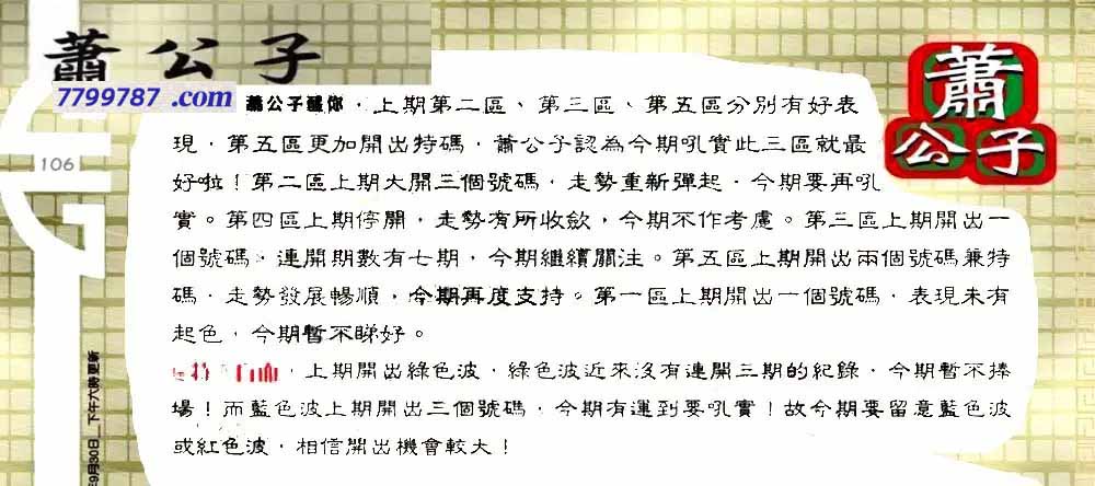 主题 :106期:老总论码/萧公子/林大师/五行夺码