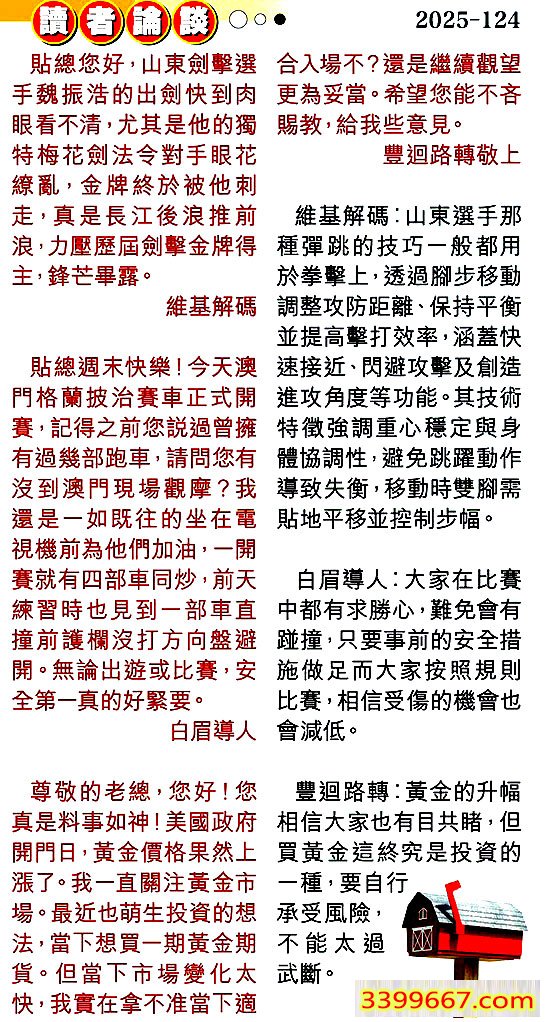 主题 :124期:彩民推荐〖貼信讀者論壇〗