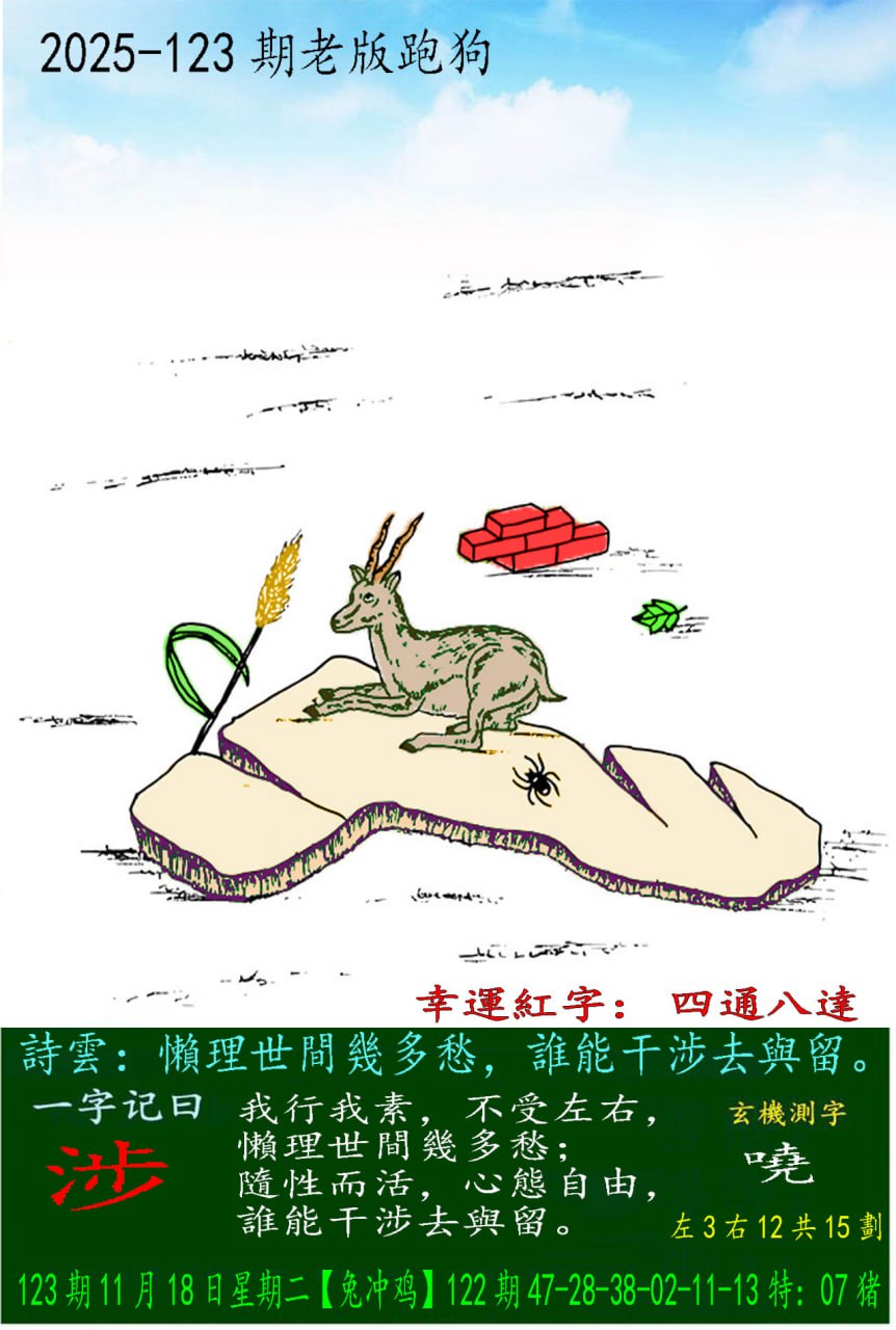 主题 :123期老版跑狗一字記之曰:【涉】 玄機測字:《嘵》