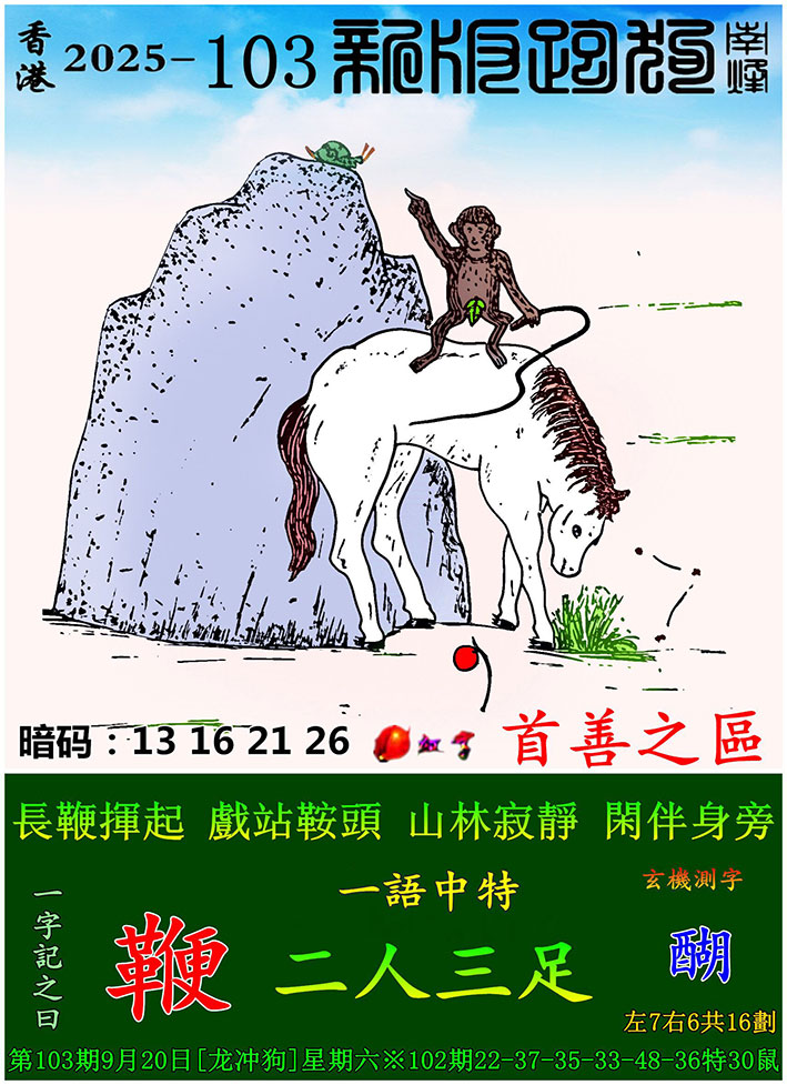 主题 :103期:新版跑狗一字記之曰【鞭】 玄機測字:【醐】